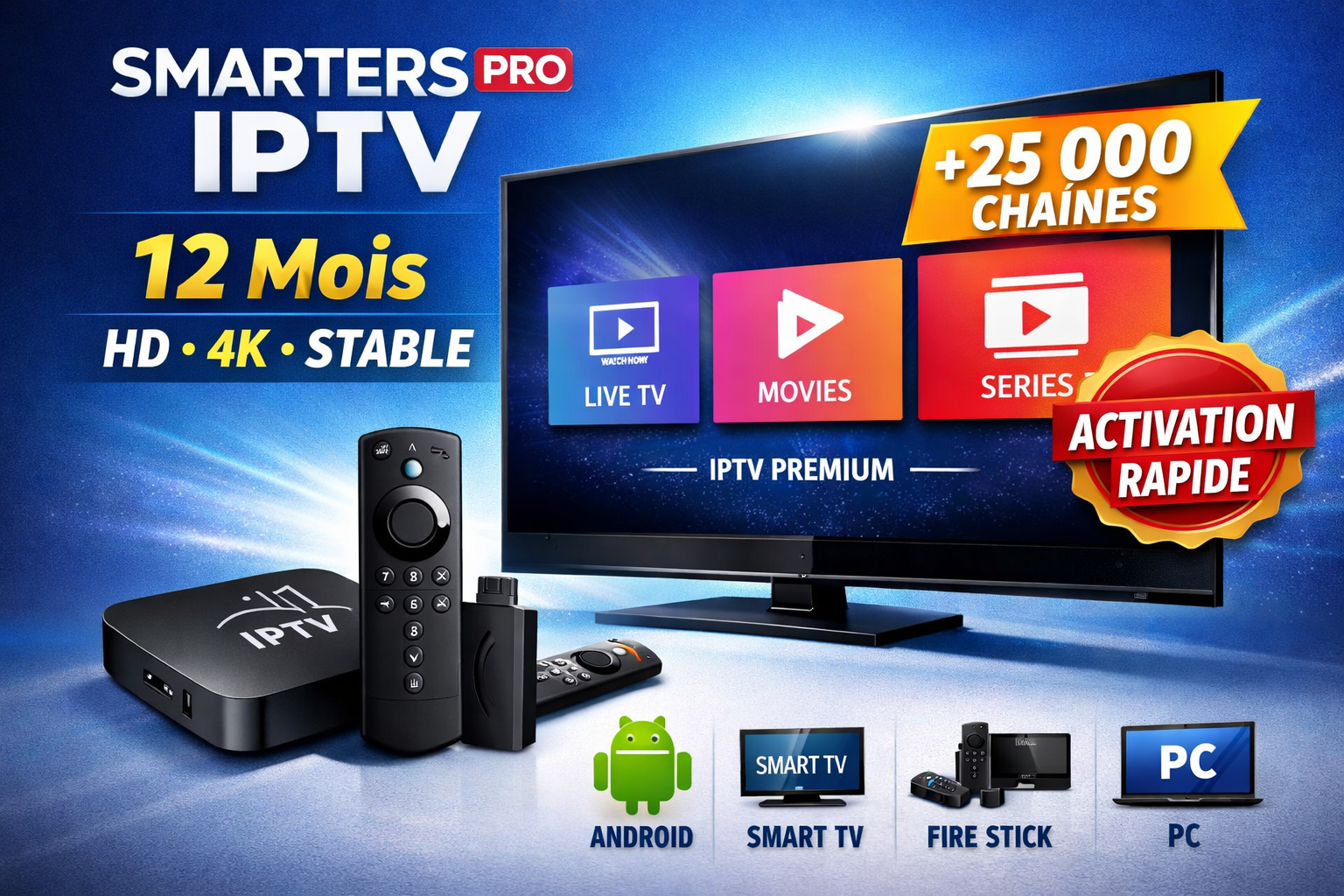 Profitez d’un abonnement SMARTERS PRO IPTV 12 mois complet et performant, conçu pour offrir un streaming fluide, stable et de haute qualité.